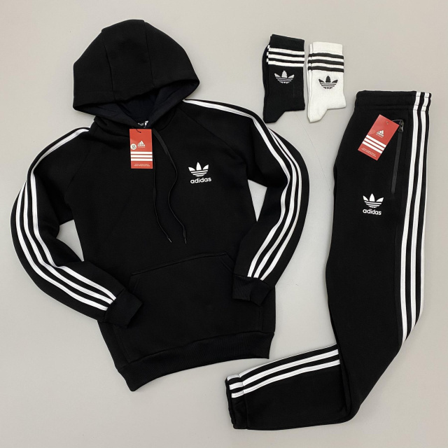 Winter fleece sports suit Adidas. Hoodie with pants. High quality Turkish three-thread cloth.